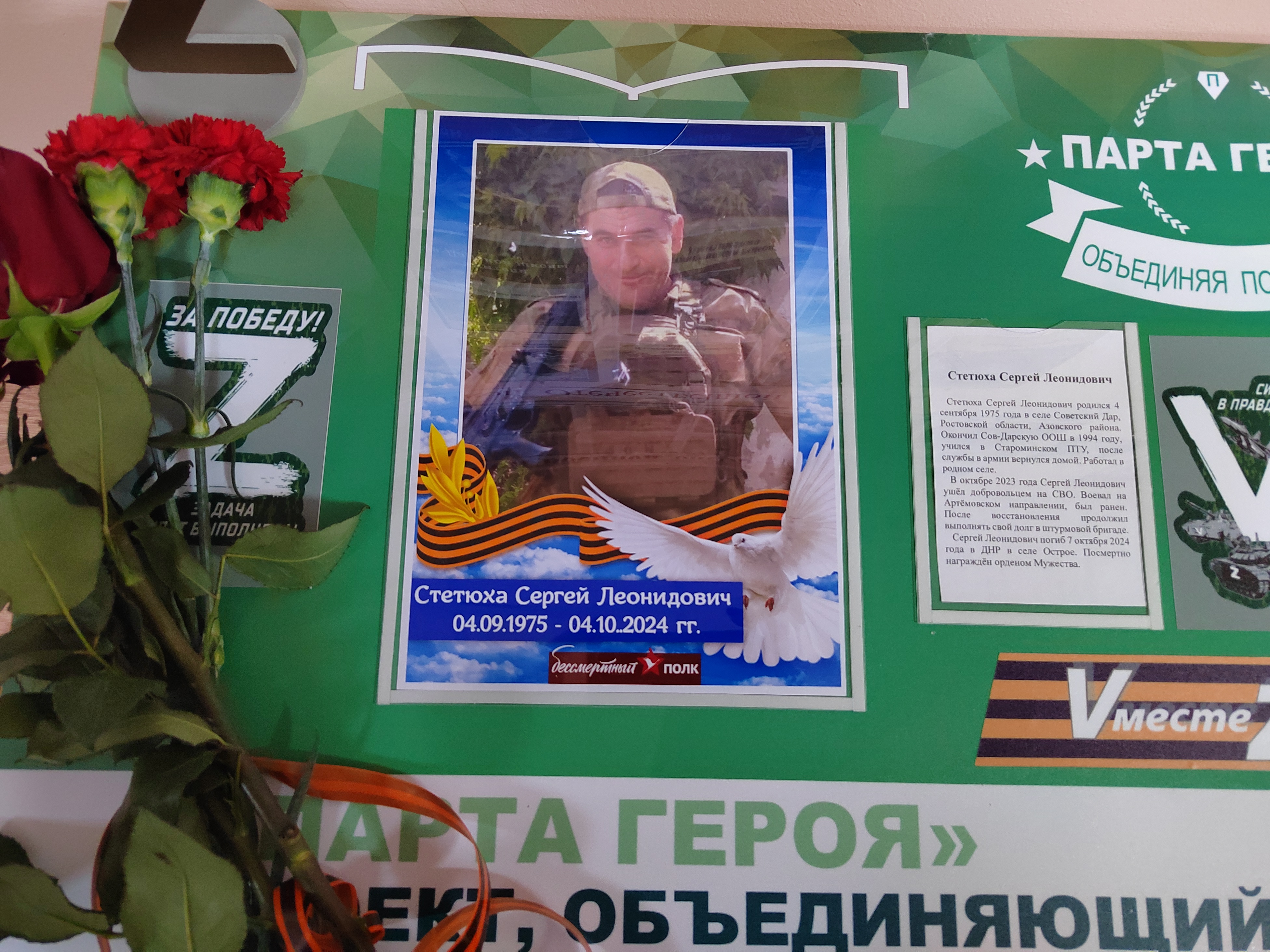 Сегодня 9.12.2025 , в день Героев Отечества, в МБОУ Сов-Дарская ООШ торжественно была открыта Парта Героя. Наши Герои - это наши односельчане, выпускники нашей школы, которые героически погибли при исполнении служебного воинского долга в ходе специальной военной операции на Украине.